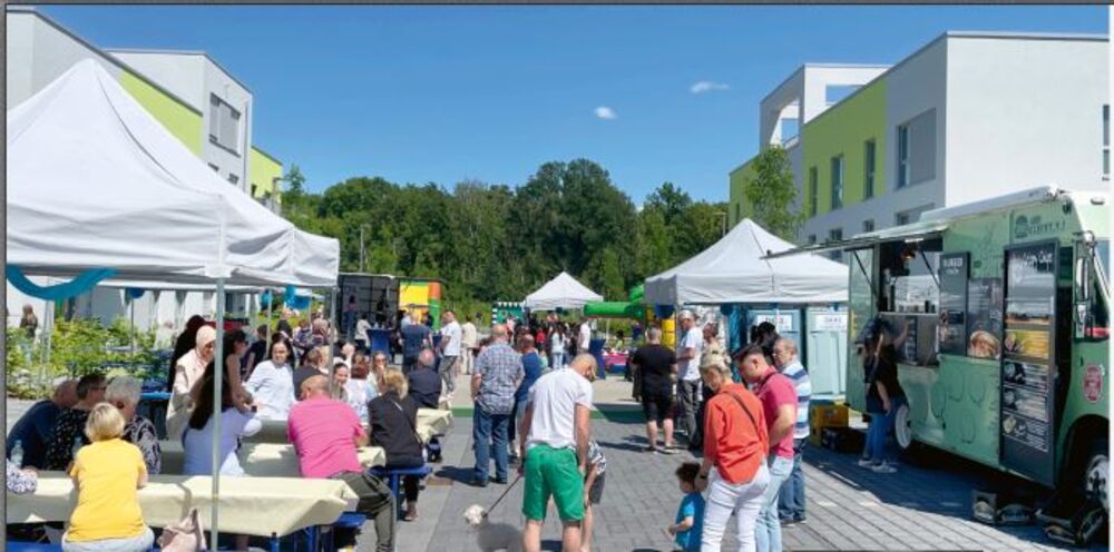 Am 11. Juni fand in Walsum das große Kennenlernfest in unserer Klimaschutzsiedlung Vierlinden-Höfe statt. Über 100 Mieterinnen und Mieter nutzten das sonnige Wetter und kamen zusammen, um bei Burgern und Chips vom Foodtruck zu schwatzen und das Wochenende zu genießen.
